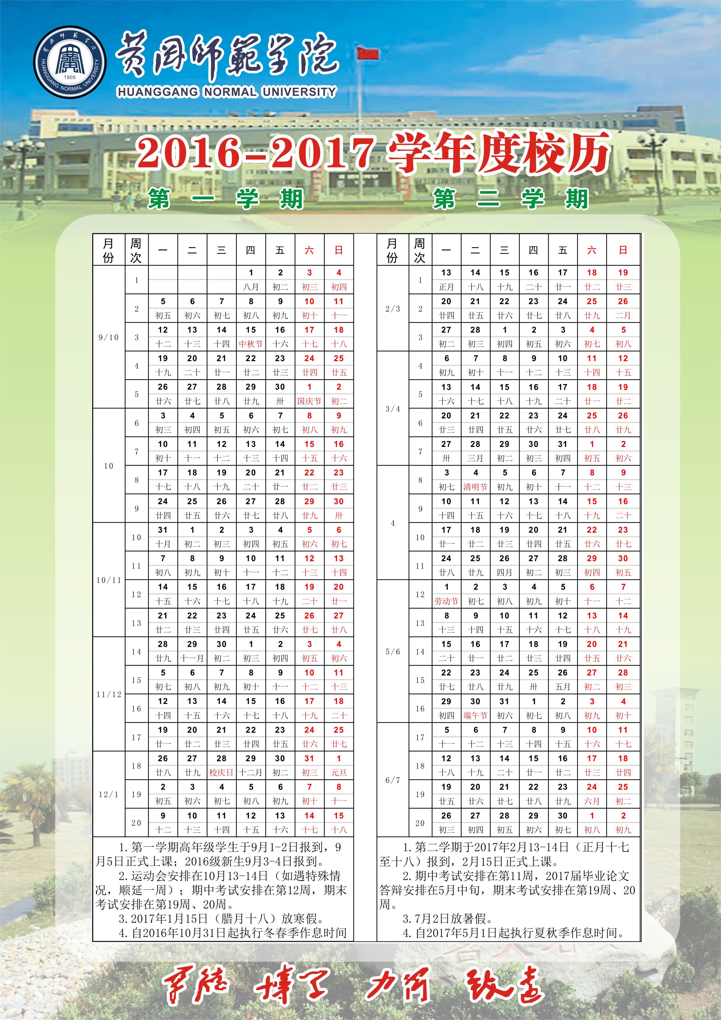 2016-2017校历