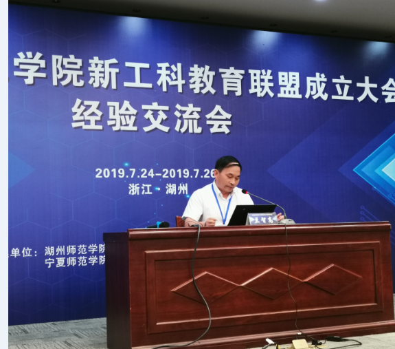 7月25日上午,由湖州师范学院、盐城师范学院、绵阳师范学院、唐山师范学院、宁夏师范学院、黄冈师范学院和白城师范学院联合倡议和牵头组建的“全国地方师范学院新工科教育联盟”在湖州正式成立。我院兰智高教授应邀做《电子信息类专业实验教学改革思路》的交流报告。
