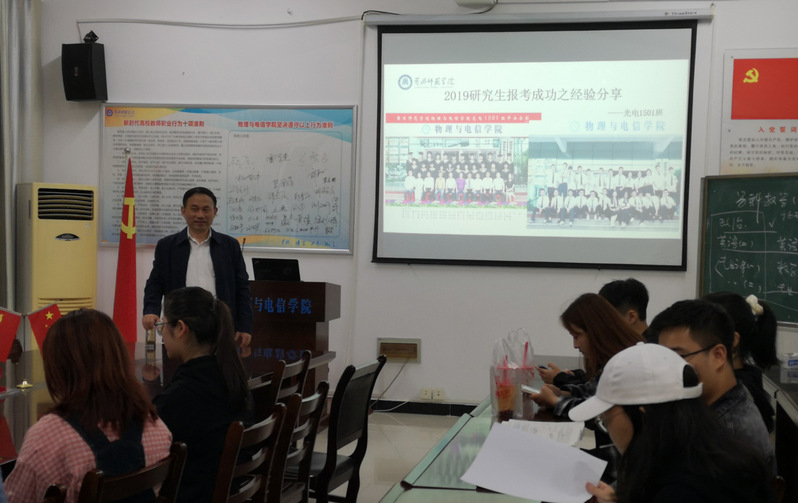 为了进一步提高我院大四学生考研的针对性,增加学生考研信心,9月22、23日晚物电楼205兰智高教授分别对我院17级物理学、电子信息类两个专业学生进行考研报考点对点指导答疑,并对我院2021年学科教育·物理硕士研究生招生宣讲。