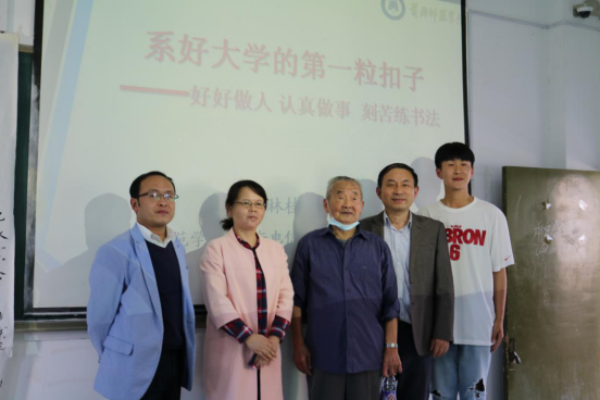 10月9日下午2:30,退休教授林桂生在创新楼506教室为2020级物理学专业78名新生做了一场别开生面的报告——《系好大学的第一粒扣子——好好做人 认真做事 刻苦练书法》。作为黄冈师范学院的老教师,1997年退休后,林桂生老师仍然不忘教书育人,关心下一代成长,一直活跃在学校第二课堂讲坛上。