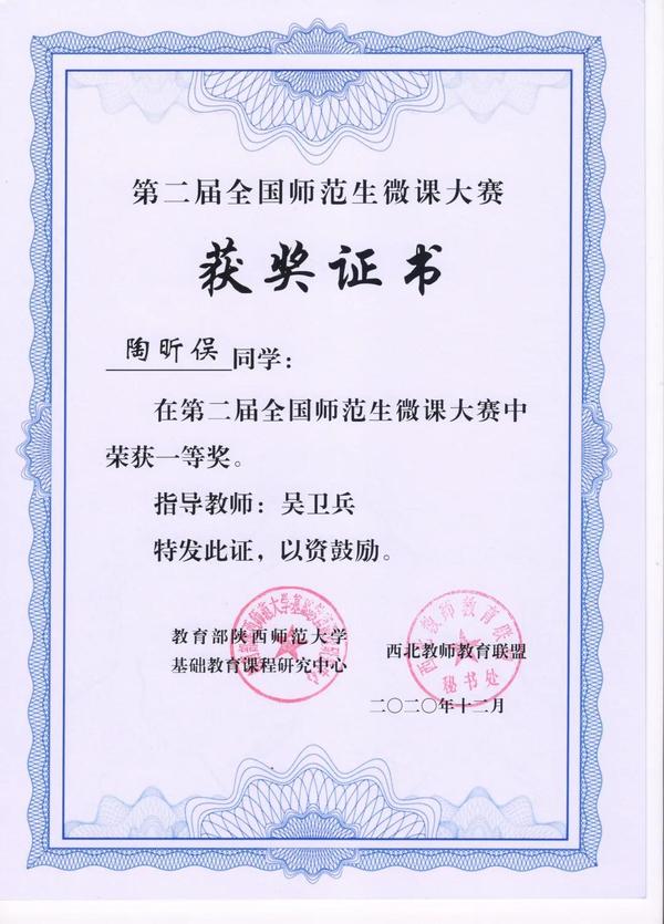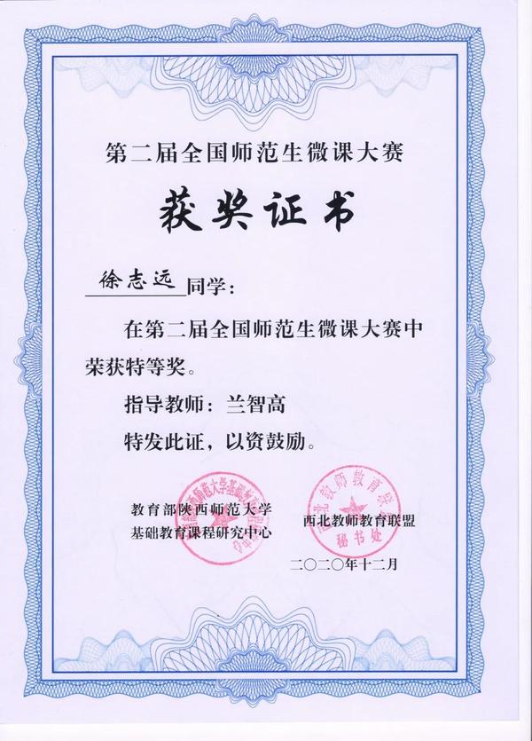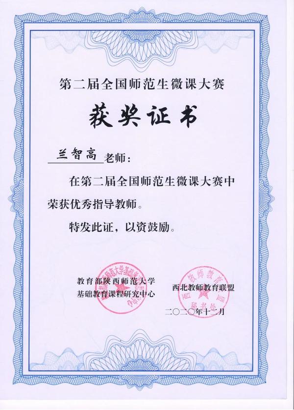 本网讯 近日,“师范生微课大赛”官方微信公众号发文公布2020年第二届全国师范生微课大赛获奖名单,本次大赛共收到来自全国各高校师范生的微课作品1424件,最终评选出特等奖71个,一等奖141个,二等奖354个,优秀奖284项,我校参赛作品脱颖而出,获特等奖1个,一等奖2个,二等奖6个、优秀奖5个,物理与电信学院兰智高教授获评优秀指导教师,我校荣获优秀组织奖。