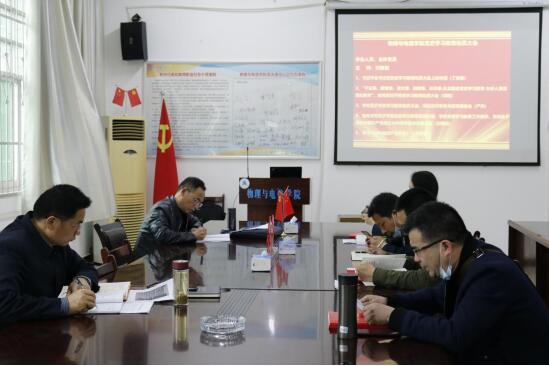 2021年4月1日下午,物理与电信学院党总支在物电楼205室召开党史学习教育动员大会,物理与电信学院党总支副书记刘智能同志主持召开,学院全体党员参加。