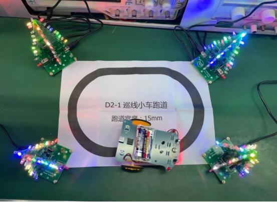比赛分为两组,第一组是大一学生,制作圣诞树,第二组是大二学生,制作巡线小车,比赛场地分别为物电学院401和405。此次比赛中,参赛者充分发挥日常学习中学到的操作技巧,遵循渐进,不慌不忙。指导老师认真负责,及时处理比赛中的突发状况,保证参赛者顺利完成比赛任务。本次比赛竞争气氛浓厚,参赛选手均表现优异,充分展现出我院学子青春激昂的风采。