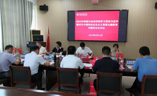 2023年8月21日上午,物理与电信学院党委班子在物电楼205会议室召开学习贯彻习近平新时代中国特色社会主义思想主题教育专题民主生活会,校党委常委、副校长胡国珍参加并指导民主生活会。