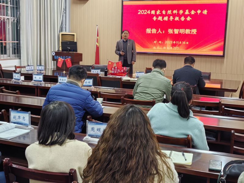 11月16日下午,学院邀请武汉纺织大学张智明教授作2024年国家自然科学基金申报专题辅导报告。学院全体副高以上职称教师和博士出席报告会。