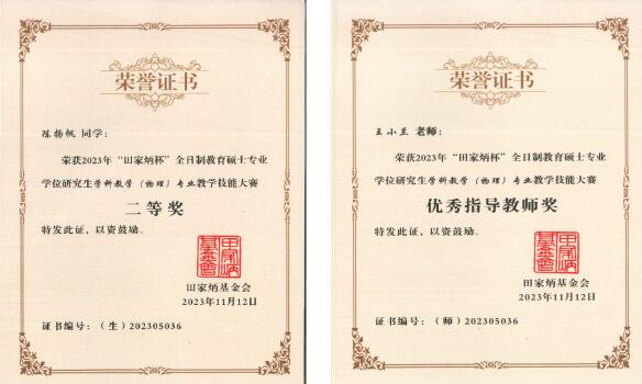 我院学子在2023年全国“田家炳杯”全日制教育硕士专业学位研究生学科教学(物理)专业教学技能大赛决赛中再创佳绩