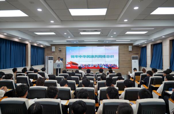 5月22日下午,校党委副书记陈朝阳以《铸牢中华民族共同体意识》为题,在求实楼308为物理与电信学院2023级学生讲授思政课。
