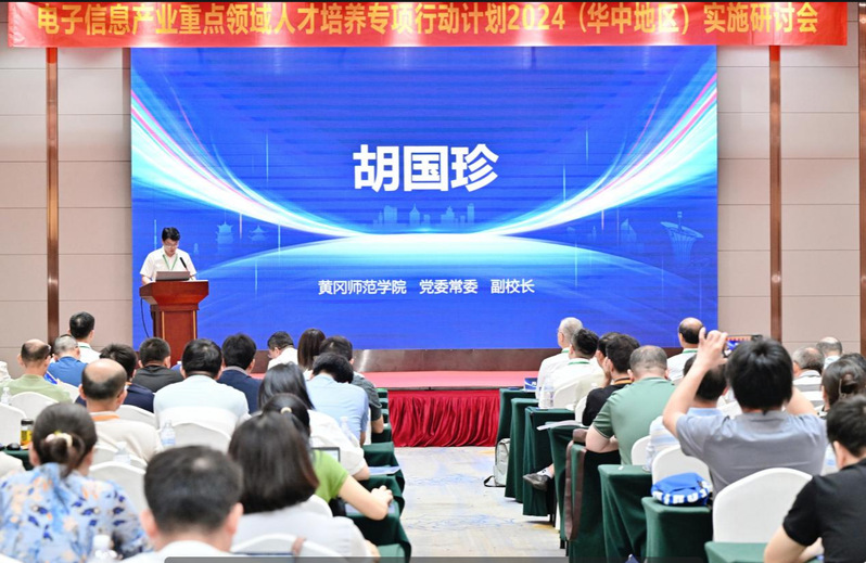 为了进一步加强我校电子信息类专业的改革建设,推进电子信息工程国家一流专业建设点认证工作。6月15号,学校党委常委、副校长胡国珍带领物理与电信学院院长兰智高、副院长丁如春及电子信息系3位系主任参加了“电子信息产业重点领域人才培养专项行动计划”研讨会,与会的领导有工业和信息化部教育与考试中心主任刘明亮、湖北省经济与信息化厅电子信息产业处处长粱莉敏,教育部电子信息类专业教学指导委员会委员、复旦大学继续教育学院院长胡波、湖北工业大学正校级干部冯征、黄冈师范学院副校长胡国珍。本次会议我校胡校长作为“专项行动计划”单位代表受大会举办方邀请在开幕式上致辞。胡校长在致辞中指出我校是全国首批产教融合基地实施单位之一,将在工信部教育与考试中心的指导下,在湖北省及武汉市经信、人社等部门的支持下,在电子信息产业重点领域围绕“育训结合新模式”“人才培养与评价工作服务地方产业新模式”等方面进行深入探索,积极开展产教融合基地建设。并诚挚邀请主管部门领导、行业专家亲临黄冈,指导我校电子信息类专业建设,携手我国新质生产力的提升,电子信息产业发展贡献力量!