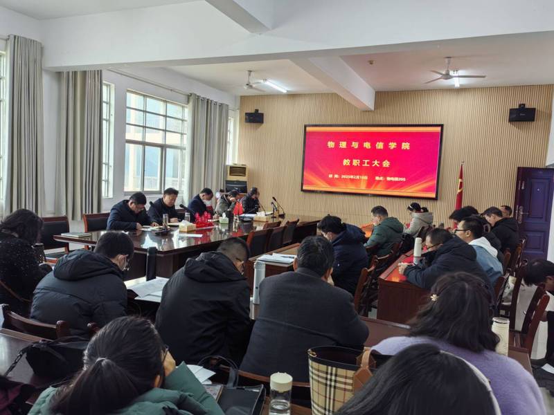 2025年2月16日下午,物理与电信学院召开2025年春季学期教职工大会,传达学习学校2025年春季学期教师大会精神,部署学院新学期重点工作。学院领导班子成员及全体教职工参加会议。会议由学院党委书记卢年桥主持。