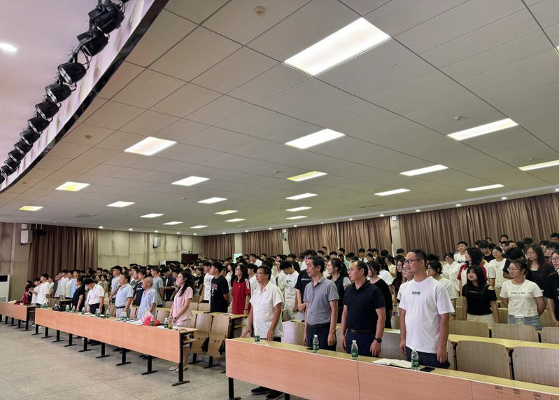 伴随着庄严的旋律,典礼正式拉开帷幕。全体与会人员肃立,高唱中华人民共和国国歌,嘹亮的歌声中满含对祖国的敬意,也为新生的大学征程注入了奋进力量。