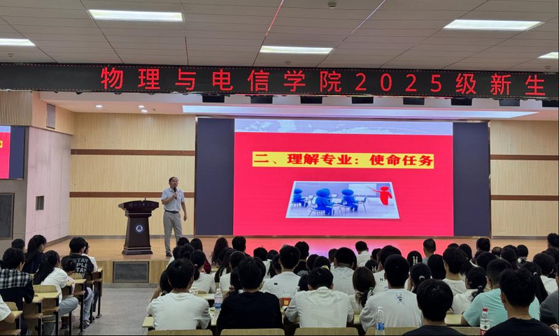 2025年9月16日上午,九游·官方版web站入口2025级新生开学典礼在北区报告厅隆重举行。304名本研新生正式成为光荣的黄师物电人。黄冈师范学院全体领导班子成员、退休老教授林桂生教授、学院教师代表、全体辅导员、新生班主任老师,以及2025级全体新生共同出席。典礼由学院党委副书记王世伟主持。